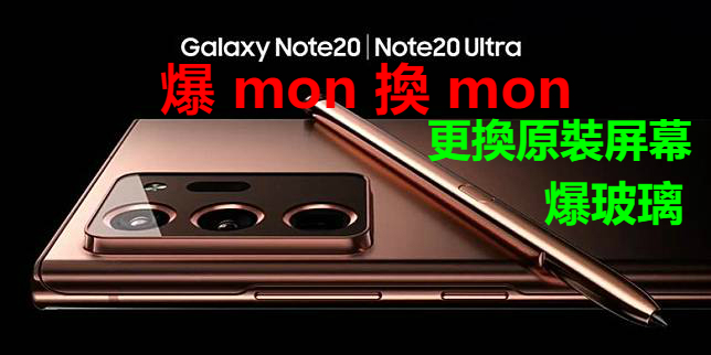 三星 SAMSUNG NOTE 20 Ultra 爆 MON 換 MON 爆玻璃、爆液晶、不能觸控、閃屏、液晶