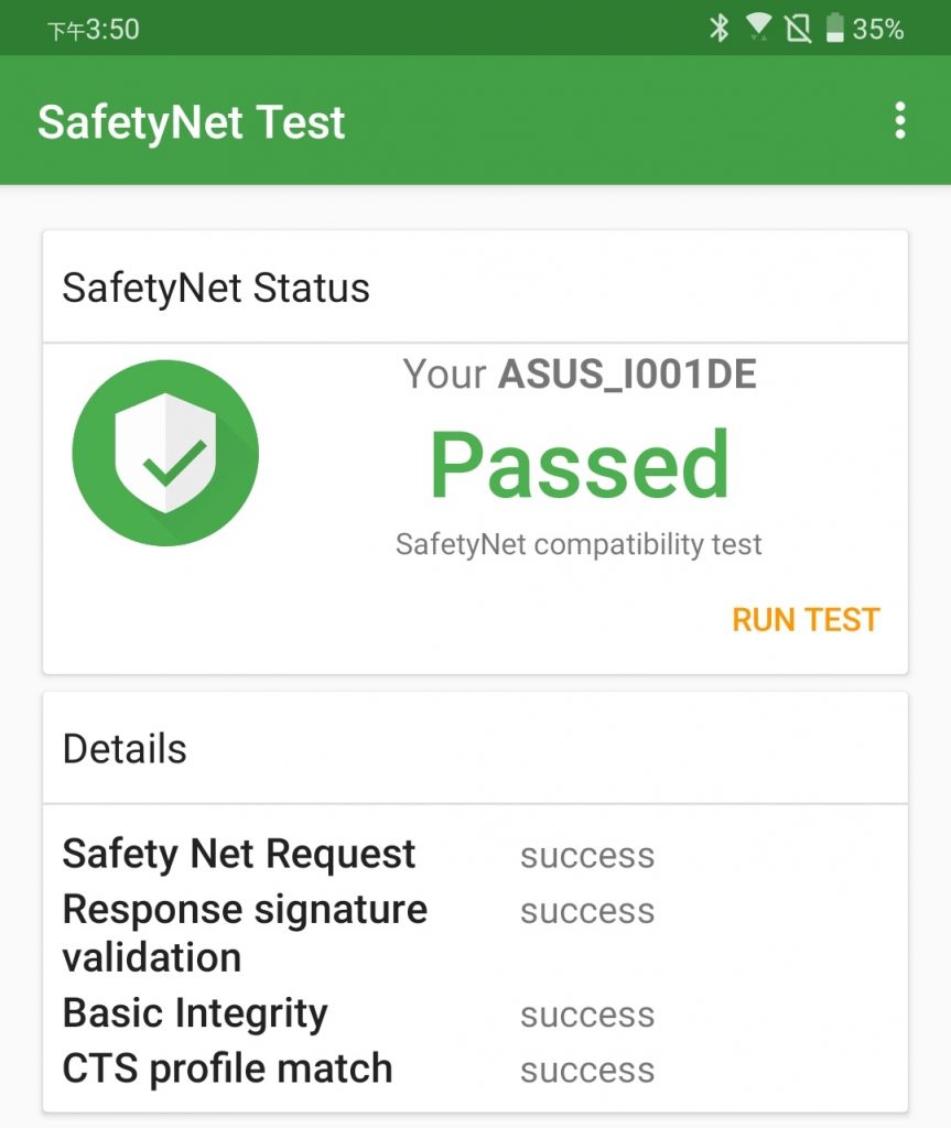 ROG 2 國內版轉換國際版系統後 SafetyNet Passed